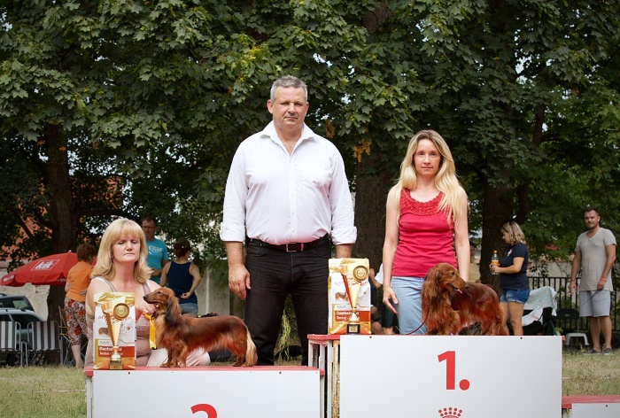 , odchovanci naší chovatelské stanice a také potomci po našich krycích psech. Na výstavě v Bělorusku opět zazářil Guliver ze Stoupovy chaloupky, v Německu už velmi úspěšně brázdí výstavní mola ve třídě mladých Charlotte ze Stoupovy chaloupky a v Polsku se na čelních místech umísťuje Bohouškův synek, Chester Senergetti
