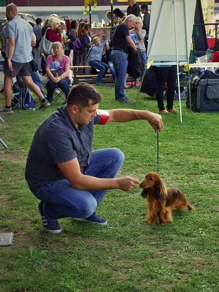 Neděle - dlouhosrstí trpasličí jezevčíci - rozhodčí: Petr Adam