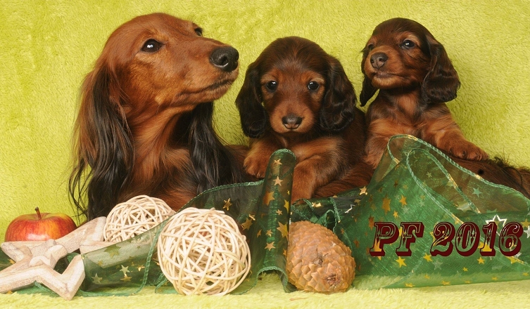V chovatelské stanici Lizus Maksimus, u našich báječných přátel z Varšavy - Ely a Mariusze Przybysz, jsme si vybrali malou Damai. Jejími rodiči jsou králičí dlouhosrstí jezevčíci - 10-ti letý pes z německého chovu Valentino von der Barke a 3-letá fenka z domovské polské chovatelské stanice, krásná Shangri-La Lizus Maksimus