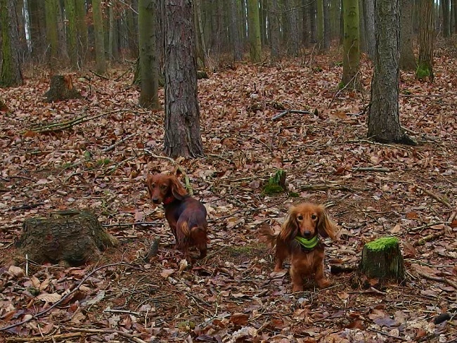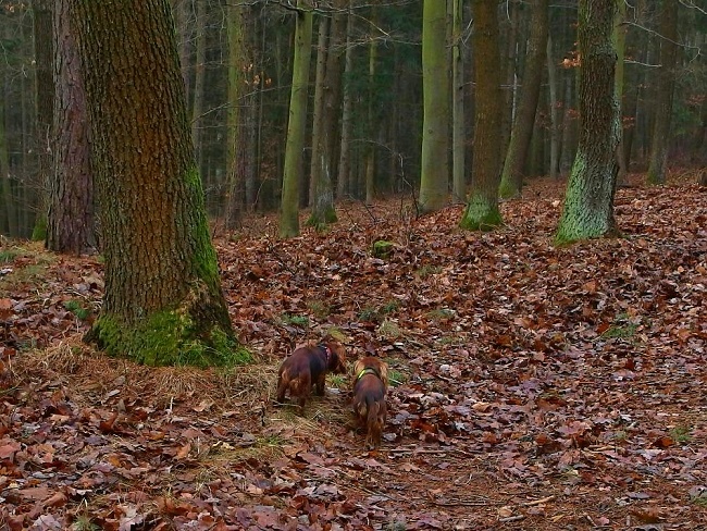 ... a níže pár "vycházkových momentek" z řádění úhlavních kamarádek, Damaiky a Isabellky, v blízkém lesíku ... tancovaly "dupáka"