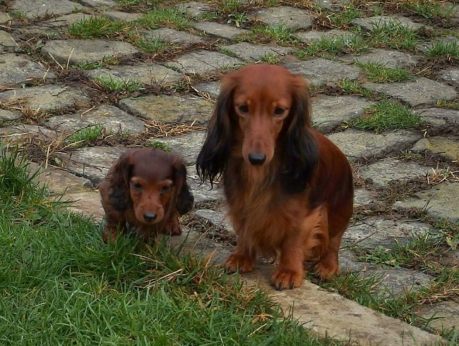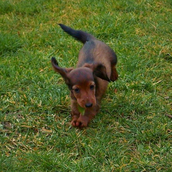 Velkou posilou naší "špageťácké" smečky je bezpochyby půlroční Isabella ze Stoupovy chaloupky. Rodiče této malé jezevčí slečny jsou nádherná Nadine Anamsunamon neboli naše "Boženka" a krásný italský trpasličí dlouhosrstý jezevčík Hiphop Della Luna Caprese. Isabellka zatím exteriérově splňuje vše, co jsme od tohoto spojení očekávali - je plnochrupá, výborně osrstěná, s nižším odstupem - což bylo hlavním cílem, mohutnějšími tlapkami, prostorným hrudníkem, výborným úhlením obou párů končetin a perfektní horni linií. Energie má tato malá sebevědomá slečna na rozdávání, utahá zcela spolehlivěsme celou smečku