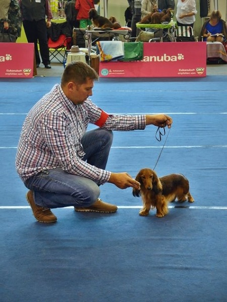 Trpasličí dlouhosrstí jezevčíci - rozhodčí Petr Řehánek (CZ)