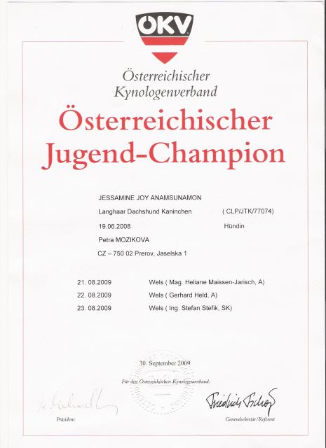 Do výstavního dění se zapojila nově i naše králičí jezevčice "Jessie Anamsunamoňáková" a to velmi úspěšně se ziskem několika junioršampionátů