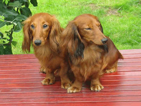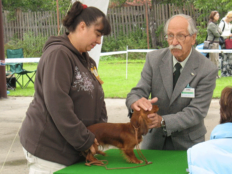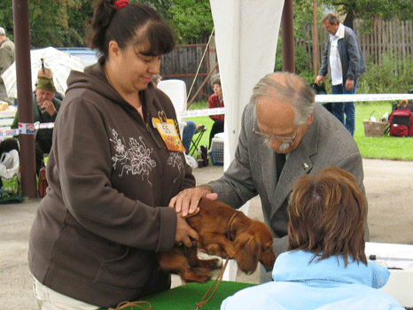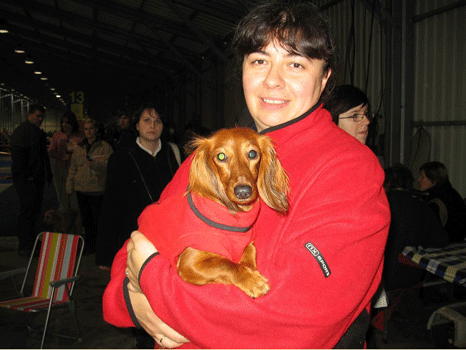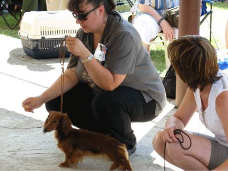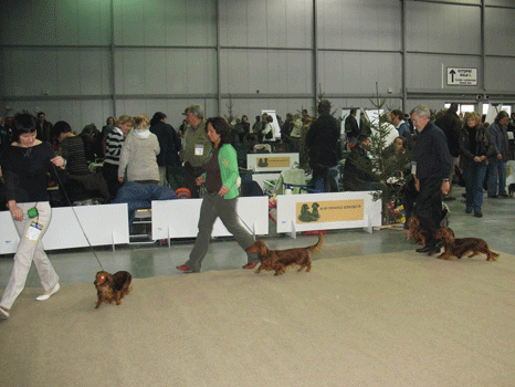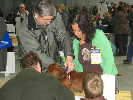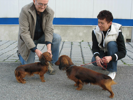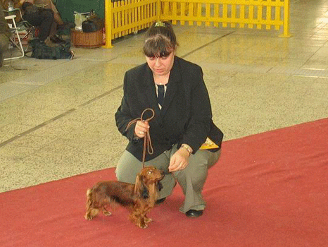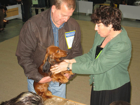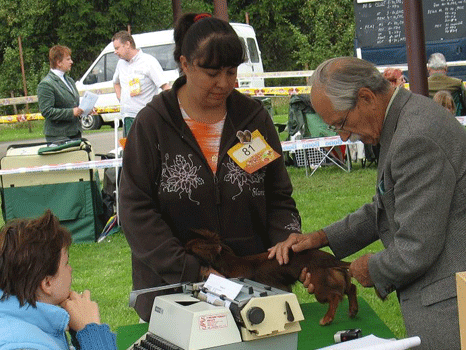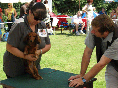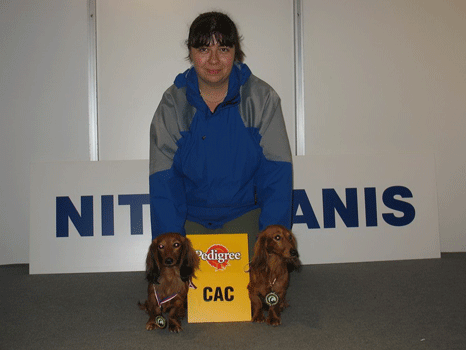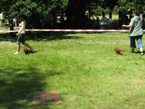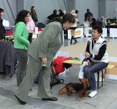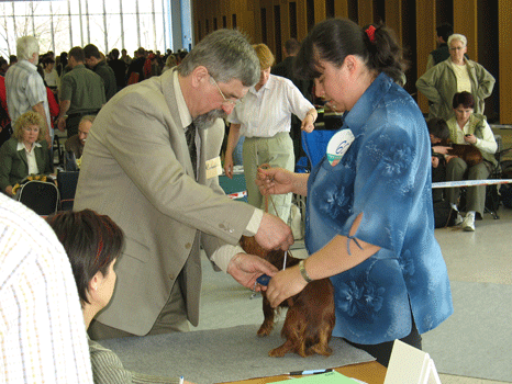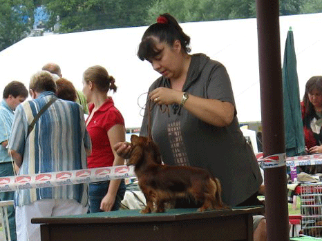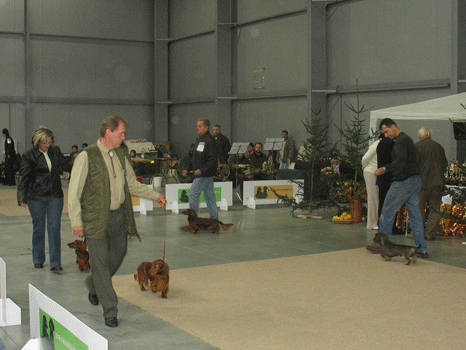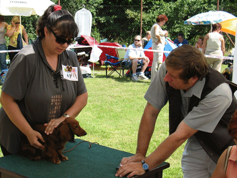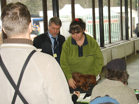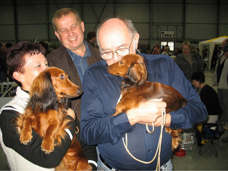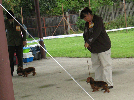 Obě holky prošly na této výstavě také bonitací ... Hana byla zbonitována jako jezevčík trpasličí, Gena jako jezevčík králičí