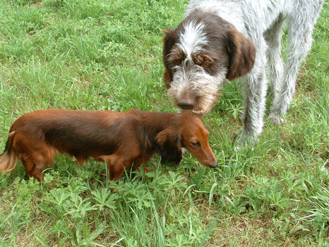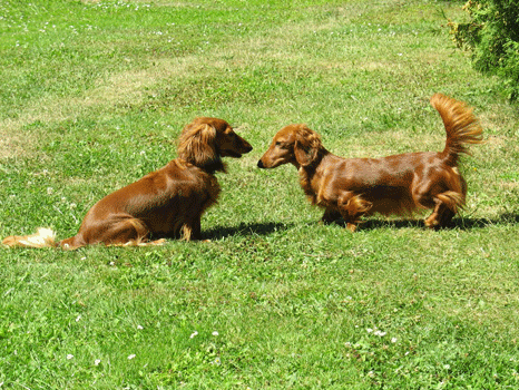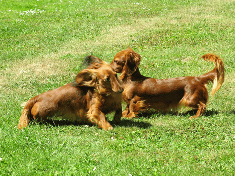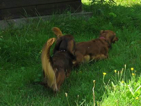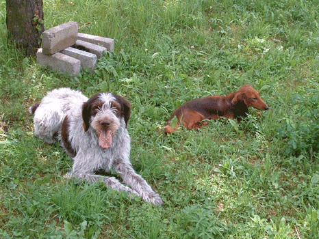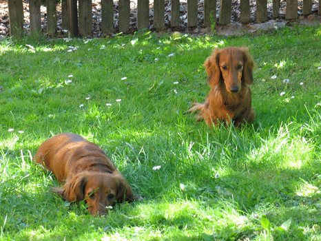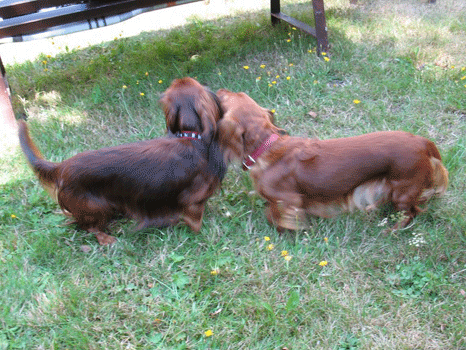 Počasí nám přálo, Amorek a jeho "harém" se vyběhal a my "dvounožci " jsme si u toho popovídali ... nu, o čem jiném než o jezevčících, že ?
