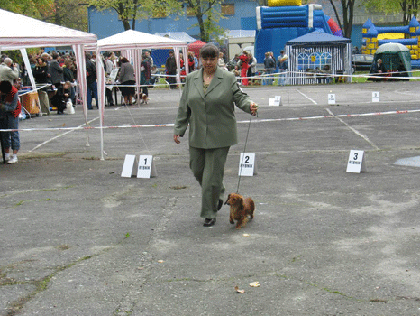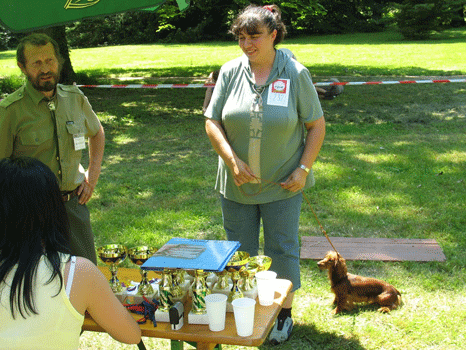 Jezevčíky zde posuzoval rozhodčí Ing. Štefan Štefík a obě naše "holky" se předvedly v rázu králičím - Hanička ve třídě otevřené a Gina ve třídě pracovní