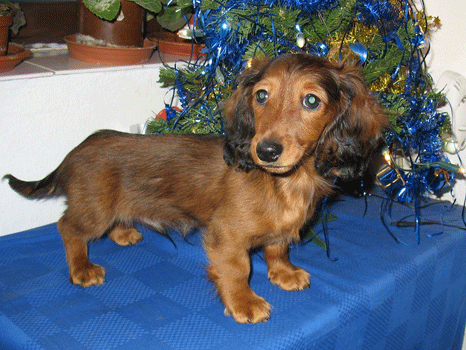 Výstavní posudek: skus úplný nůžkový, OH 30 cm, oko tmavé, fena s dobrou hlavou, rovného hřbetu, standartního osrstění.